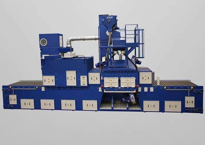 一款機器被選擇使用的首要優勢就應該是它的性能方面,履帶式拋丸機就具有很強的性能優勢,因為這類機器結合了國內外的技術所以是一種清理效果很好的機器,并且它不僅僅具有這些,它的噪音方面結構方面都是具有優勢的,噪音小,結構緊湊,所以也就因此被利用在大中批量的生產中,作為除銹和強化拋丸。