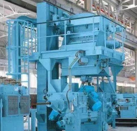 工件由輸送輥道送至封閉的拋丸清理室,利用拋丸器高速旋轉(zhuǎn)的葉輪將彈丸加速拋射至工件表面,對工件表面進(jìn)行沖擊、刮削以清除工件表面的鐵銹和污物,然后利用橫掃、滾刷、收丸螺旋和高壓吹管將工件表面的積丸和浮塵吹掃干凈,由送出輥道送出,從而使鋼材達(dá)到除銹、防銹的目的。