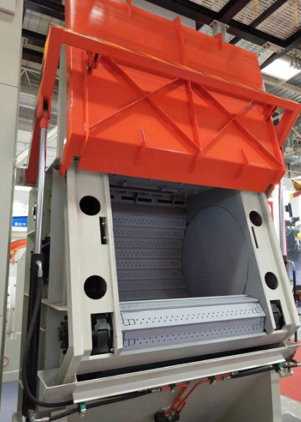 履帶式拋丸機主要結構包括:拋丸清理室、丸料循環系統、拋丸器、清丸裝置、供丸系統、除塵系統和電控系統等部件。