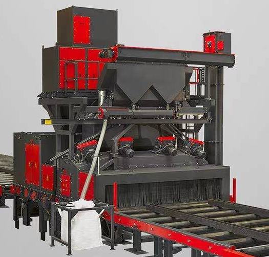 爬架清理機(jī)一般采用通過式拋丸清理,輥道輸送將爬架往拋丸清理室內(nèi)輸送一邊拋丸一邊往拋丸清理室外輸送,整個(gè)工作過程無死角。爬架清理機(jī)的工作原理如下: