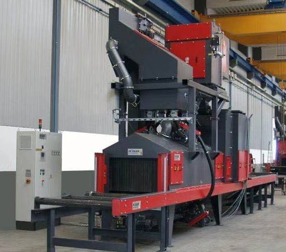 1、采用通過式,通過式采用輥道輸送爬架網片至拋丸室;