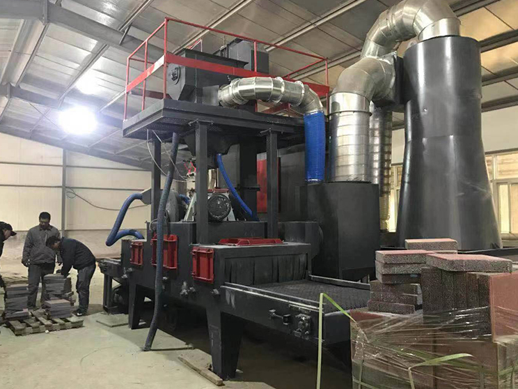 石材拋丸機結構組成:首要部件由整理室、輥道運送機、拋丸器、彈丸循環體系(含提高機、分離器、縱向螺旋運送器和供丸管道)、除塵、清掃體系、電氣操控等部件組成。