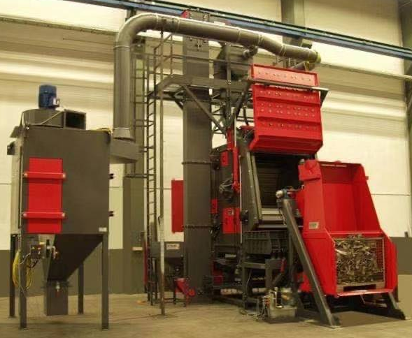 1.清理室——清理室為大容腔板式箱形組焊結構,室體內壁襯有ZGMn13耐磨防護板,清理作業(yè)在密封的容腔內進行。達到提高工件表面及內在質量的目的,并終提高機械產品和金屬型材的抗腐蝕能力和提高鋼材的抗疲勞性能,延長其使用壽命;這是很容易處置廢物。
