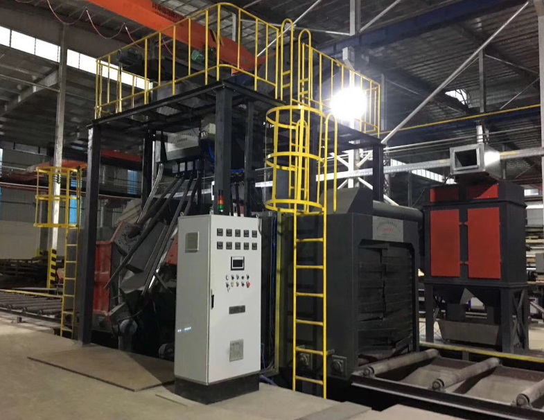 銹層及其污垢迅速脫落,鋼材表面得到粗糙的光滑表面,工件在室外清洗兩側的入口和出口輥道上裝卸。關于環境保護問題,我們一直在關注和解決問題。您可能會擔心在使用通過式拋丸機期間是否會發生環境污染。請放心,在開發此設備時已考慮過此設計。噴丸過程中產生的粉塵通過排氣管送到除塵系統,清潔后的空氣排放到大氣中,捕獲并收集顆粒粉塵。